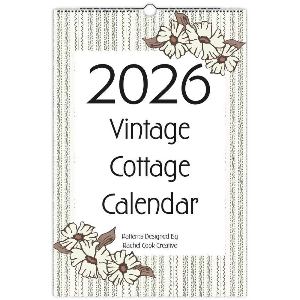 The 2026 Vintage Cottage Calendar features twelve beautiful and unique patterns in a neutral palette with creams, beiges, pinks, and greens. The calendar was prepared with practicality in mind. Each calendar block measures approximately 2.25 inches high x 1.25 inches wide providing plenty of room to write. The thick paper is sturdy and great for writing on with pencil, ballpoint pen, or Sharpie.